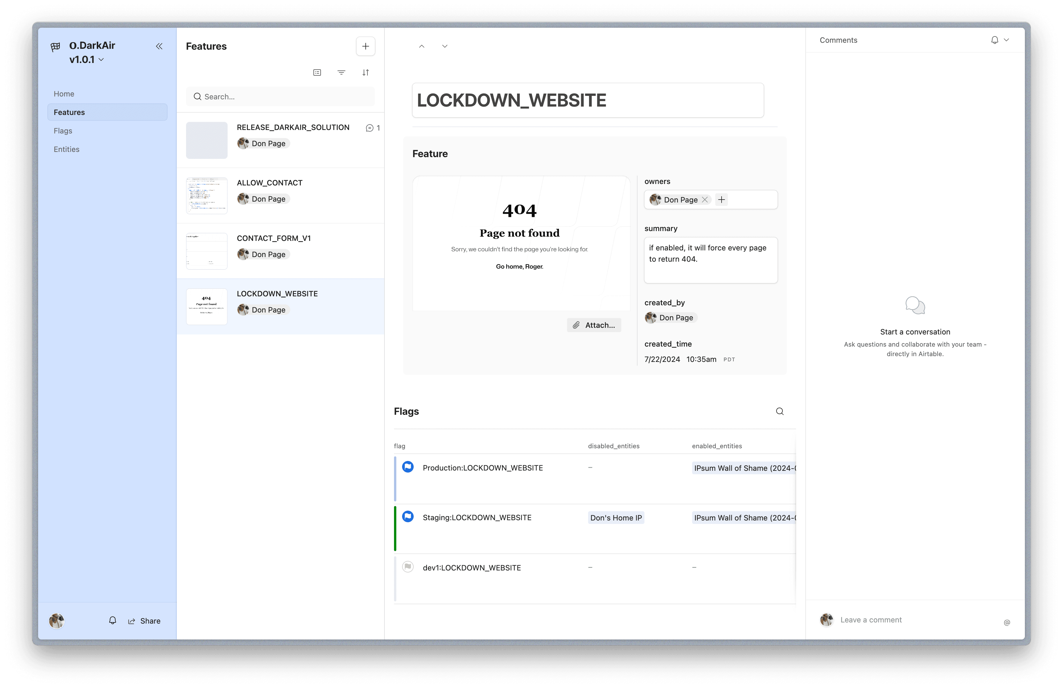 Manage feature flags and progressive rollouts using the power of the connected apps platform, Airtable.
